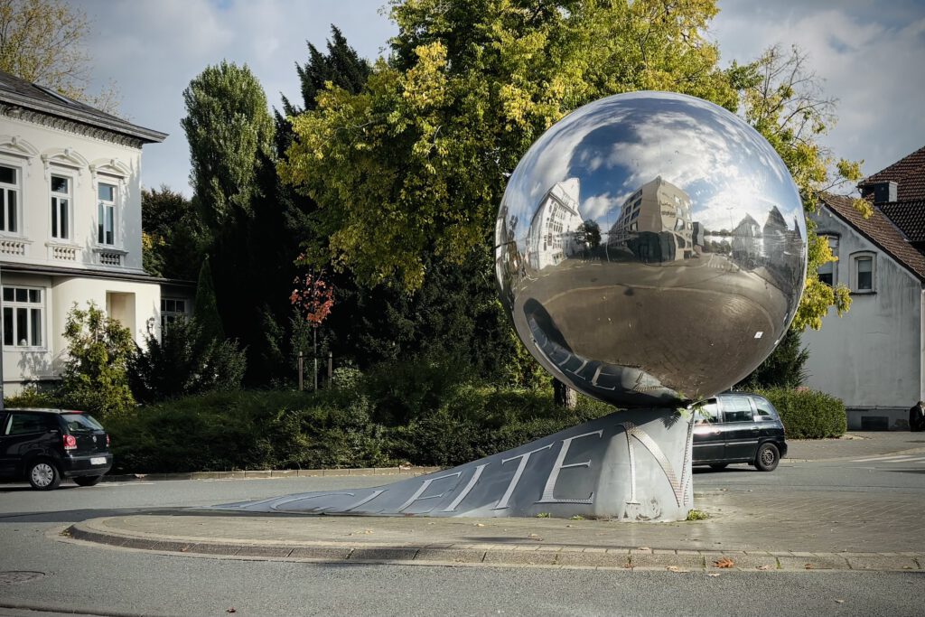 Die Edelstahlkugel des Denkmals „La Palla“ im Herforder Martviertel ist ein Kunstwerk des italienischen … Mehr