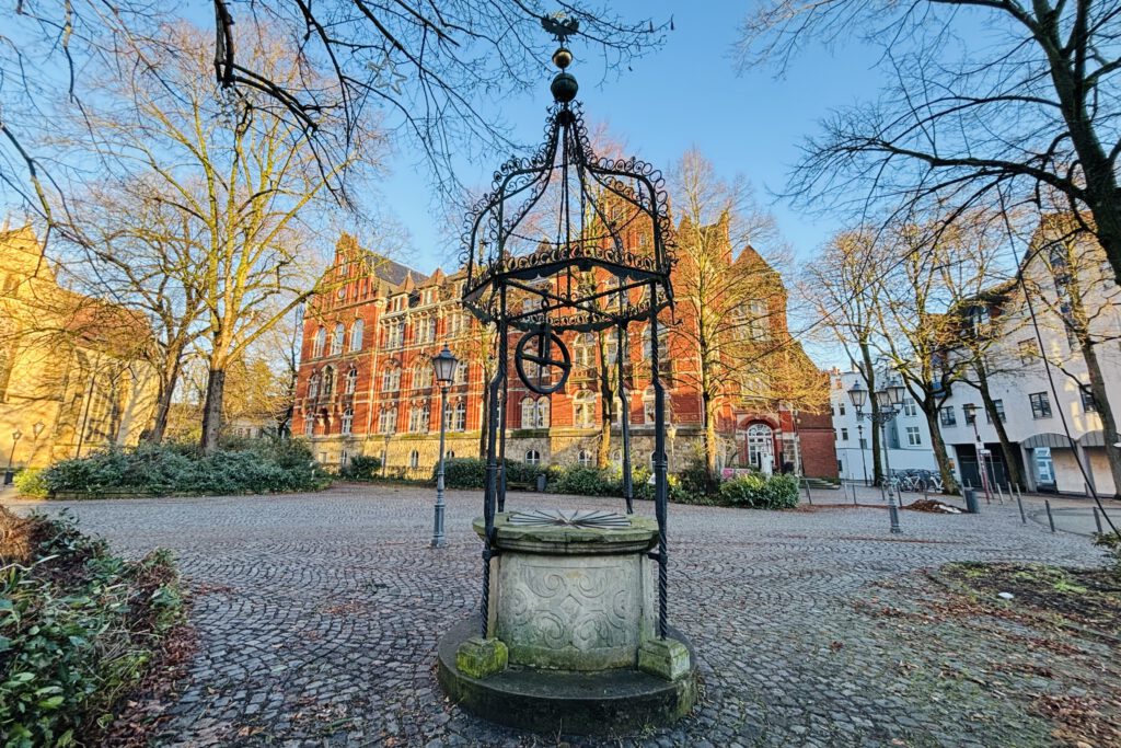 Der Altstädter Brunnen in Herford steht heute am Münsterkirchplatz an der Elisabethstraße und stammt aus dem Jahr 1616; sein charakteristisches Merkmal ist die filigrane schmiedeeiserne Krone, die das alte Herforder Stadtwappen trägt. Ursprünglich befand sich dieser Ziehbrunnen auf dem Alten Markt, wurde aber um 1830 während einer finanziellen Notlage der Stadt verkauft und auf dem Gut Ostenwalde bei Melle aufgestellt. Mitte der 1960er Jahre wurde der Brunnen wiederentdeckt und 1967 durch eine Stiftung zurück in die Stadt gebracht, wodurch ein bedeutendes Stück städtischer Geschichte erhalten blieb. Heute fungiert der Altstädter Brunnen als historisches Denkmal im Herzen der Altstadt und erinnert an die Wasserversorgung und den Alltag der frühen Neuzeit.