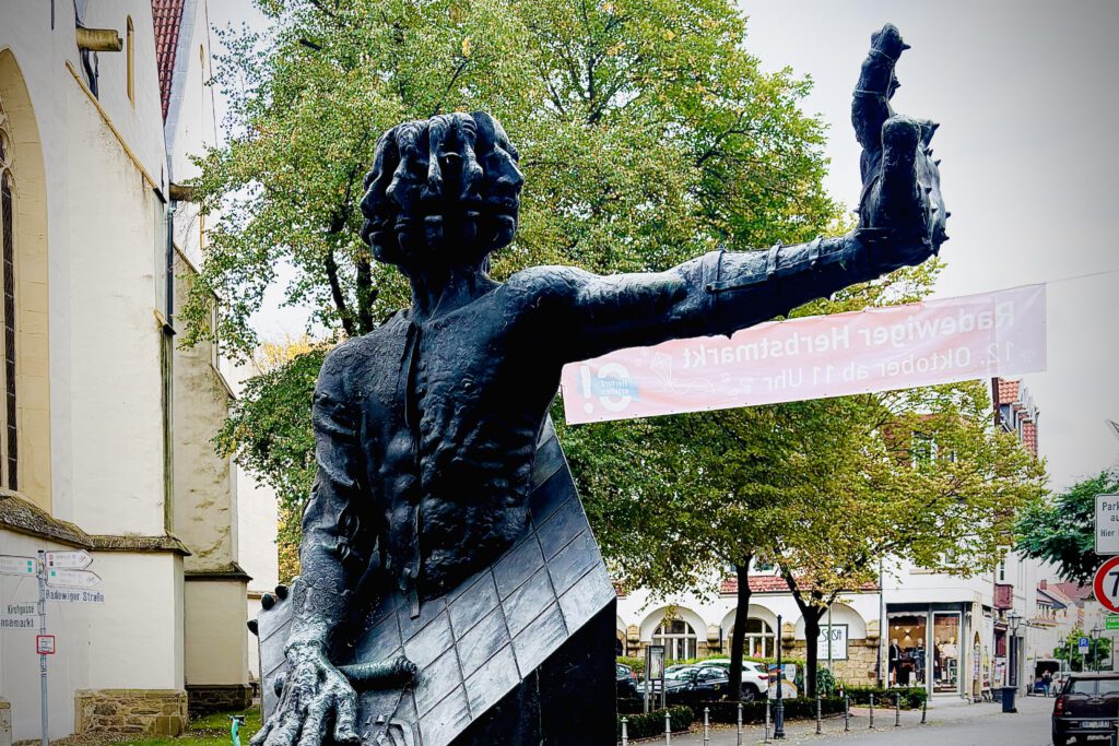 Ein Mahnmal für Widerstand, Identität und die Verteidigung städtischer Autonomie, das Werk von Wolfgang Knorr verbindet Geschichte und Gegenwart zu einem stillen Dialog über Mut und Selbstbehauptung. Die gespaltene Gestalt spiegelt die Spannungen und Entscheidungen einer Zeit, in der Loyalität und Freiheit neu verhandelt wurden. Inspiriert von Anton Fürstenau, erinnert das Denkmal an den unermüdlichen Einsatz für die Reichsfreiheit Herfords nach 1647. Es bleibt ein Symbol für Standhaftigkeit und den Willen, Eigenständigkeit zu bewahren.