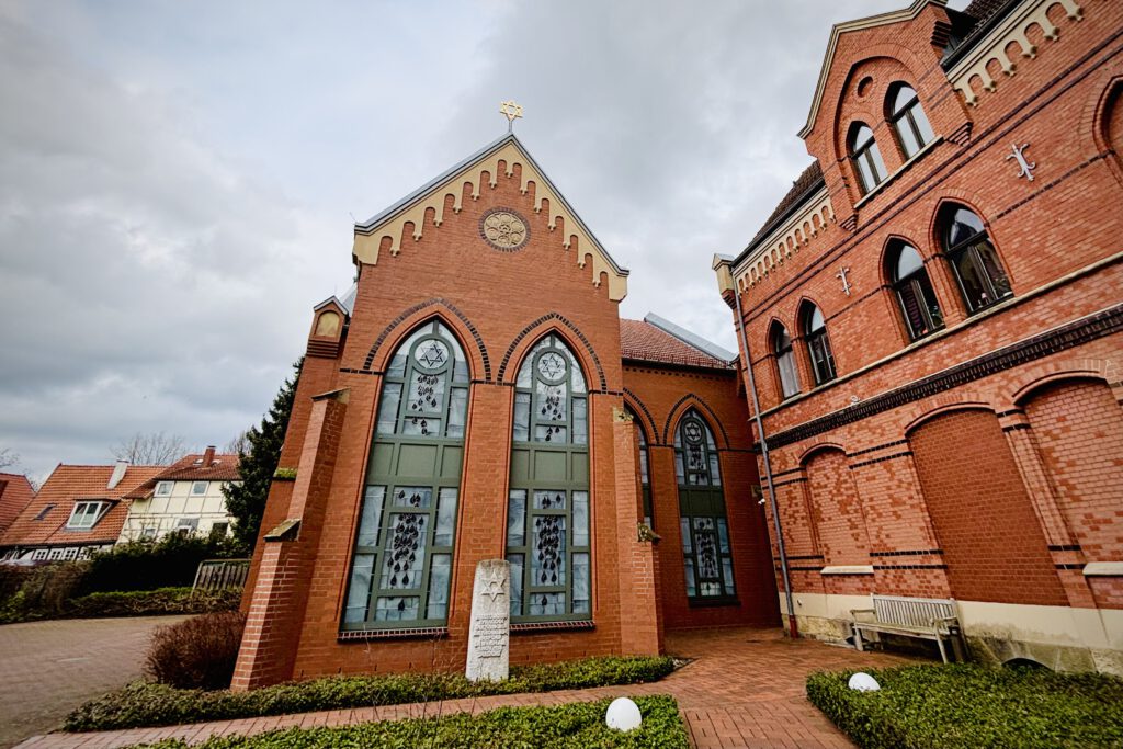 Die Synagoge Herford steht an der Komturstraße in der Herforder Neustadt und ist der Sitz der jüdischen Kultusgemeinde Herford‑Detmold. Sie wurde am 14. März 2010 an der Stelle der früheren Synagoge eingeweiht, fast 72 Jahre nach ihrer Zerstörung während der Novemberpogrome 1938 durch die Nationalsozialisten. Der Wiederaufbau im neugotischen Stil erinnert an die lange Geschichte jüdischen Lebens in Herford und symbolisiert Wiederbelebung und Erinnerung. Das Gebäude ist geprägt von symbolischer Gestaltung im Inneren und steht als kulturelles und historisches Wahrzeichen der Region.